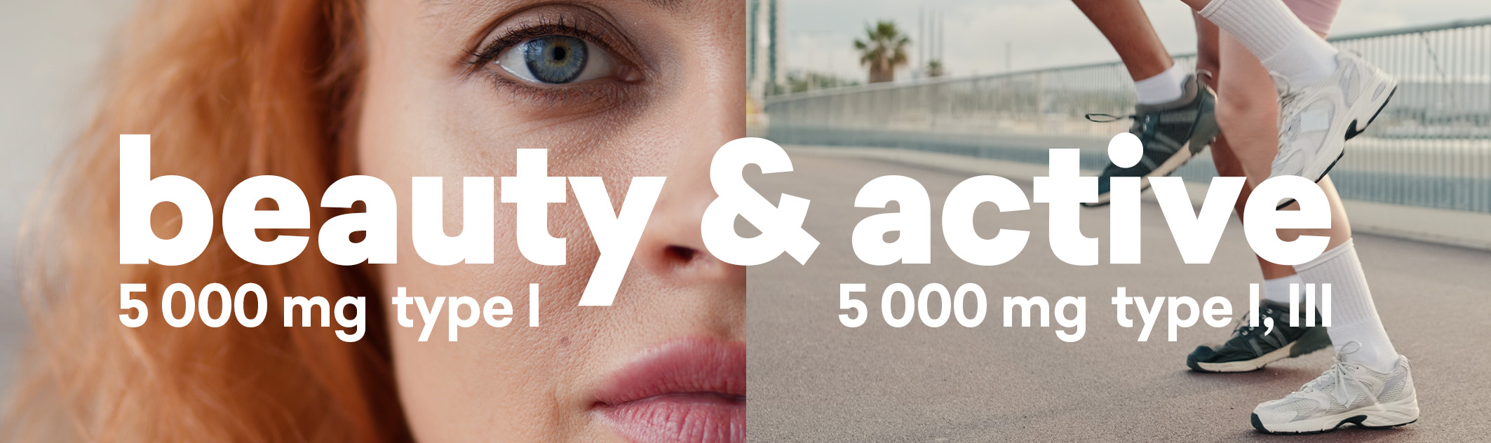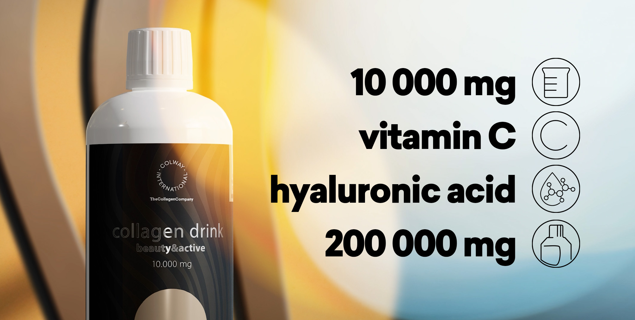 to suplement diety w formie płynnej, opracowany dla każdego, kto chce dbać o zasoby kolagenu w swoim organizmie. Collagen Drink Beauty & Active zawiera aż 10 000 mg hydrolizowanego kolagenu w jednej porcji (25 ml)*– w równych proporcjach kolagenu rybiego i wołowego, wzbogaconego aż o 80 mg witaminy C (100% RWS) pochodzącej z ekstraktu z aceroli oraz 5 mg kwasu hialuronowego. Całość zamknięta w poręcznej butelce 500 ml, która wystarcza na 20 dni suplementacji. Pyszny smak mango sprawi, że suplementacja stanie się Twoją codzienną przyjemnością.